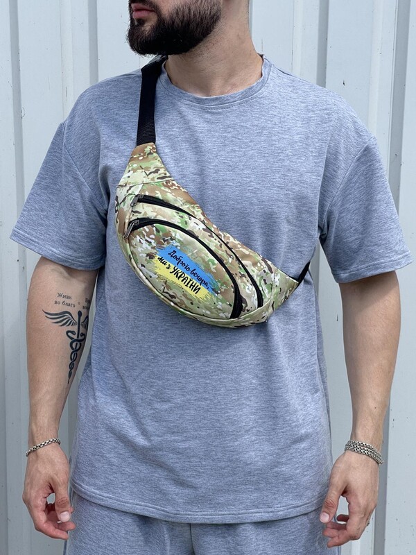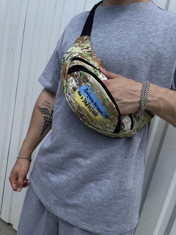 Фото - Камуфляжна поясна сумка з білим лого - Men box