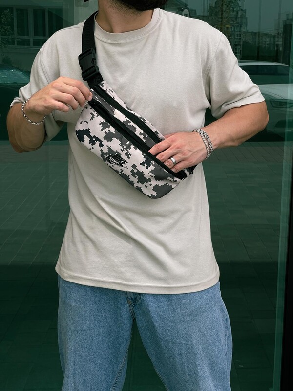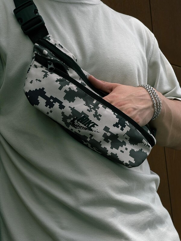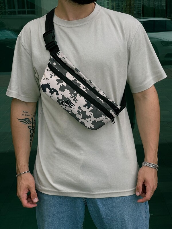 Фото - Камуфляжна поясна сумка з білим лого - Men box