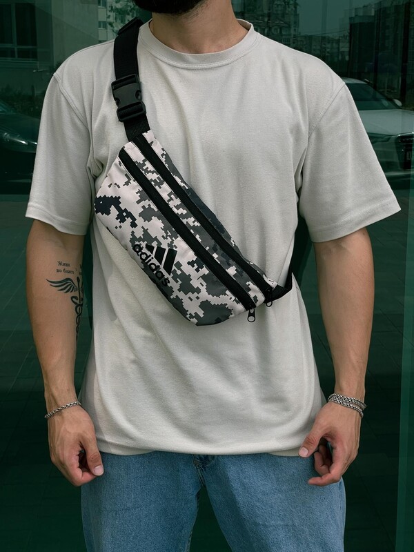 Фото - Камуфляжна поясна сумка з білим лого - Men box