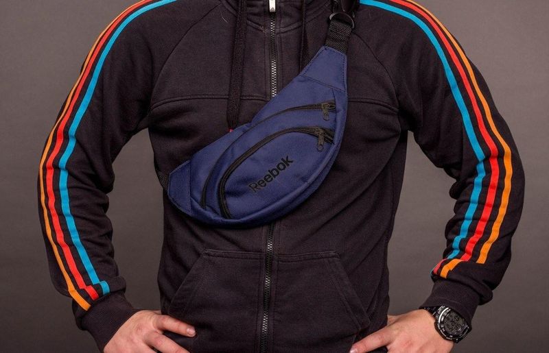 Фото - Бананка темно-синього кольору з чорним вишитим логотипом - Men box
