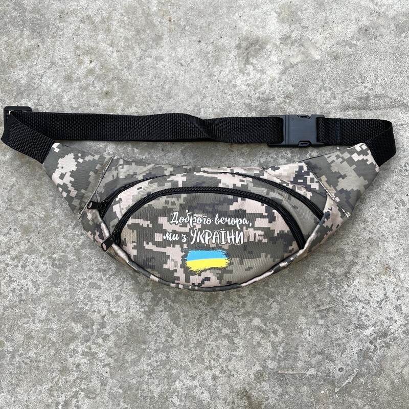 Камуфляжна поясна сумка з білим лого