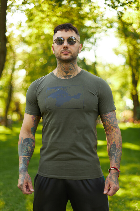 Бавовняна чоловіча футболка кольору хакі від українського бренду Intruder — це зручний і стильний вибір для повсякденного гардеробу. Виготовлена з високоякісного турецького куліру у складі 90% бавовни та 10% еластану, вона ідеально сидить по фігурі та забезпечує комфорт протягом усього дня. Прямий крій і круглий виріз горловини додають класичного вигляду, а короткі рукави створюють відчуття легкості та свободи рухів. Яскравий принт із написом "I’ll be back" виконаний методом стійкої накатки, що зберігає насиченість кольору навіть після численних прань і не вигорає на сонці.