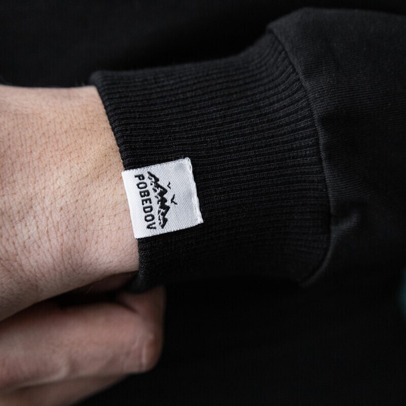 Світшот Pobedov бавовняний чорний з чорним гербом (вишивка)