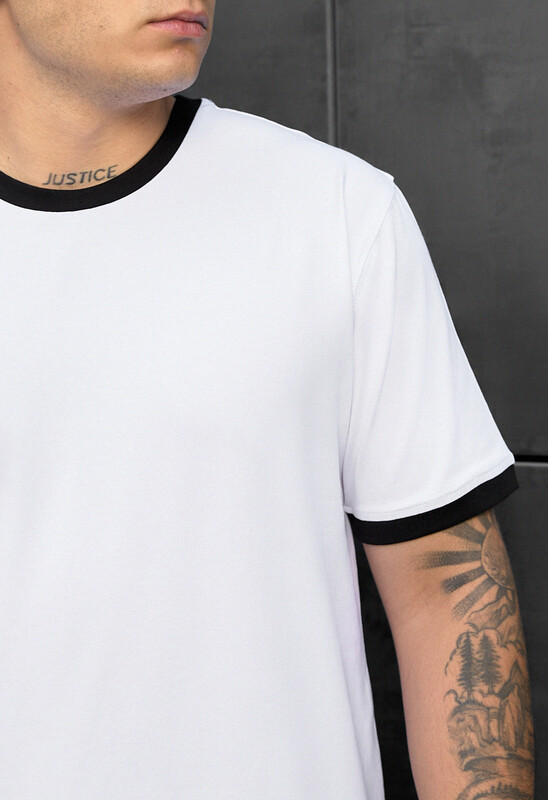 Класична футболка для повсякденного носіння з виділеною горловиною та стрічками на рукавах для створення базового, або casual образу.