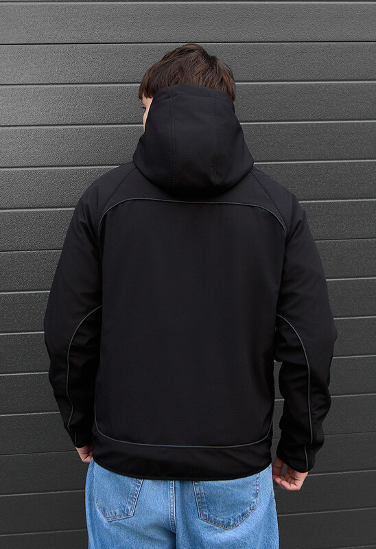 Куртка soft shell із цупкого матеріалу гарантує оптимальний мікроклімат навіть під час вітру та опадів у демісезон. У глибоких кишенях зручно розмістяться усі твої особисті речі, а водовідштовхуючі застібки-блискавки вбережуть їх від промокання. Надійне прилягання забезпечують еластичні резинки на рукавах і внизу виробу. А для безпечного пересування у темряві модель доповнена рефлективною окантовкою.
