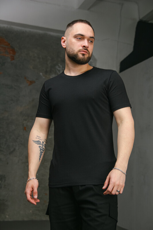 Фото - Чорна патріотична футболка Pobedov Peremoga з наклейкою "Герб" - Men box