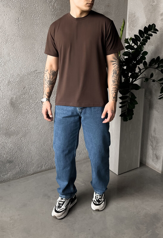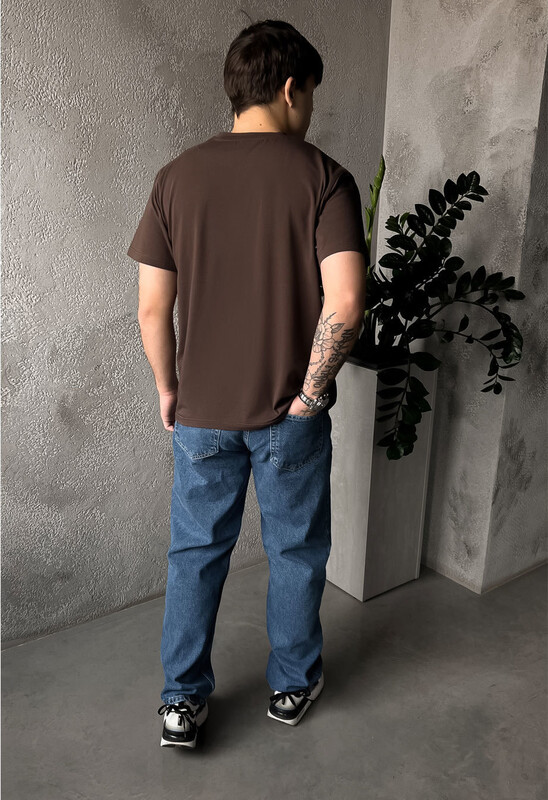 Стильна однотонна футболка з бавовняного трикотажу з додаванням еластану.
