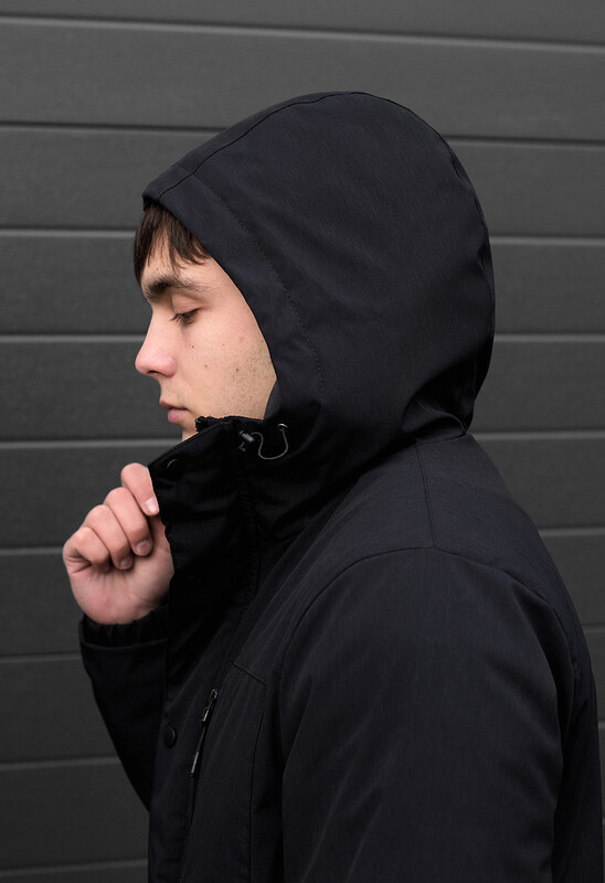 - висока горловина переходить у капюшон, ширина якого регулюється еластичною стяжкою із пластиковими фіксаторами;