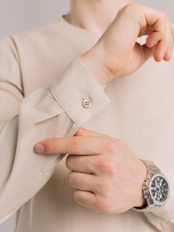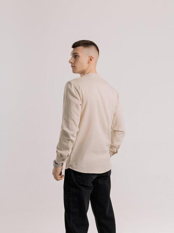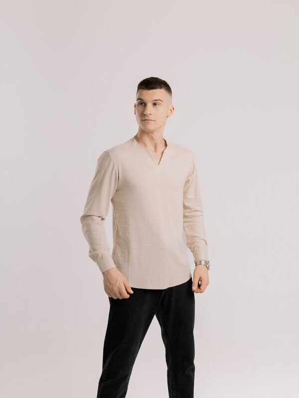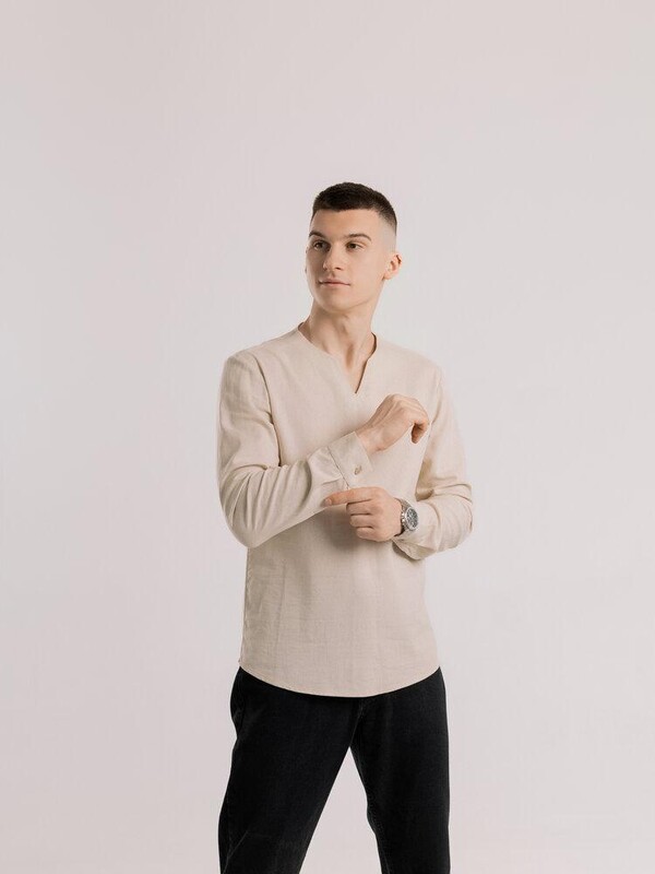 Бежева сорочка Pobedov — це спокій, легкість і комфорт, втілені у стильному повсякденному одязі. Прямий крій робить її зручною та універсальною, а V-подібний виріз без ґудзиків додає моделі легкої розслабленості. Манжети на ґудзиках доповнюють силует, зберігаючи охайність. М’який бежевий відтінок пасує як для прогулянок, так і для зустрічей у стилі смарт-кежуал. Сорочка добре поєднується з джинсами, шортами та світлими брюками — чудовий вибір на щодень у теплу пору року.
