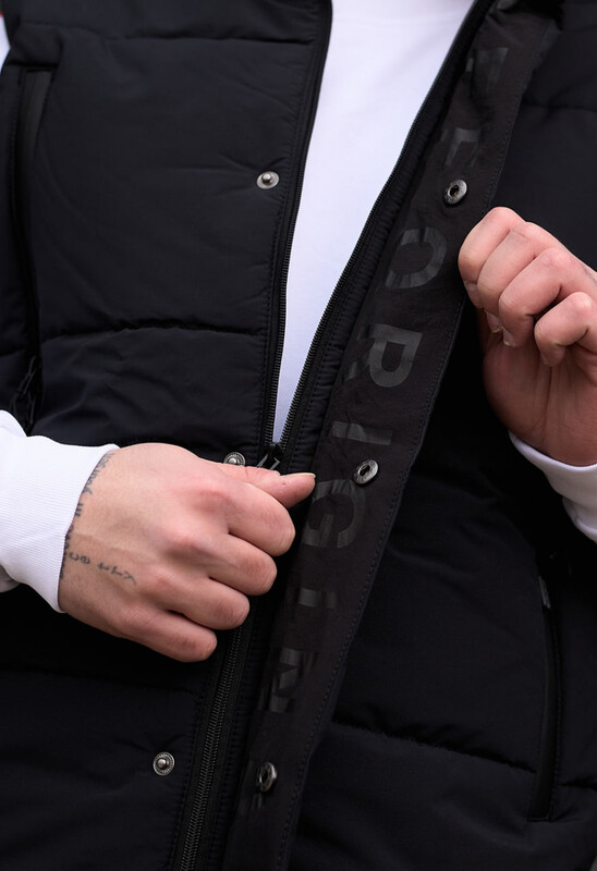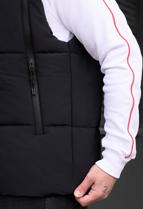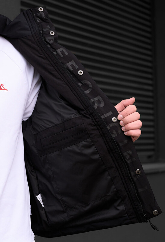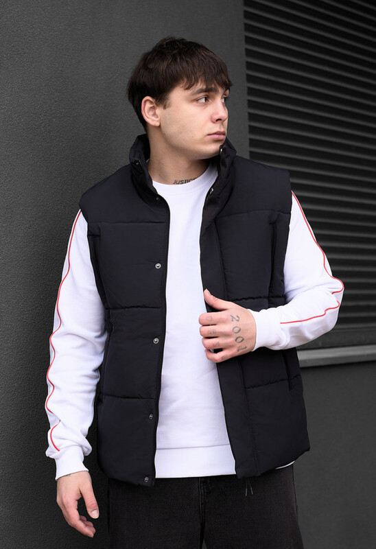 Утеплена жилетка — чудовий варіант для повсякденного аутфіта в демісезонний період. Вертикальний принт на внутрішній стороні вітрозахисної планки створить ексклюзивний образ і підкреслить твою належність до бренду.