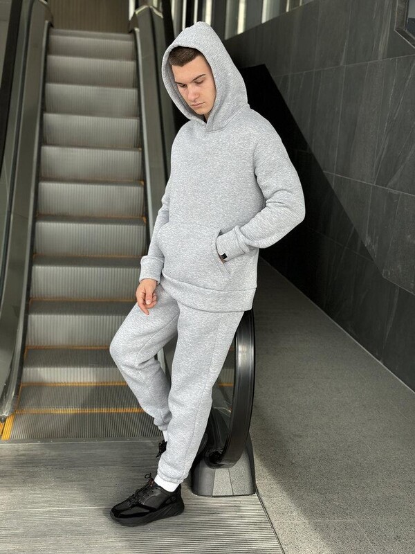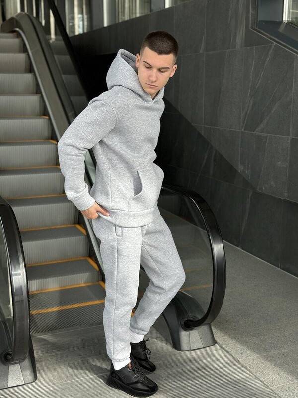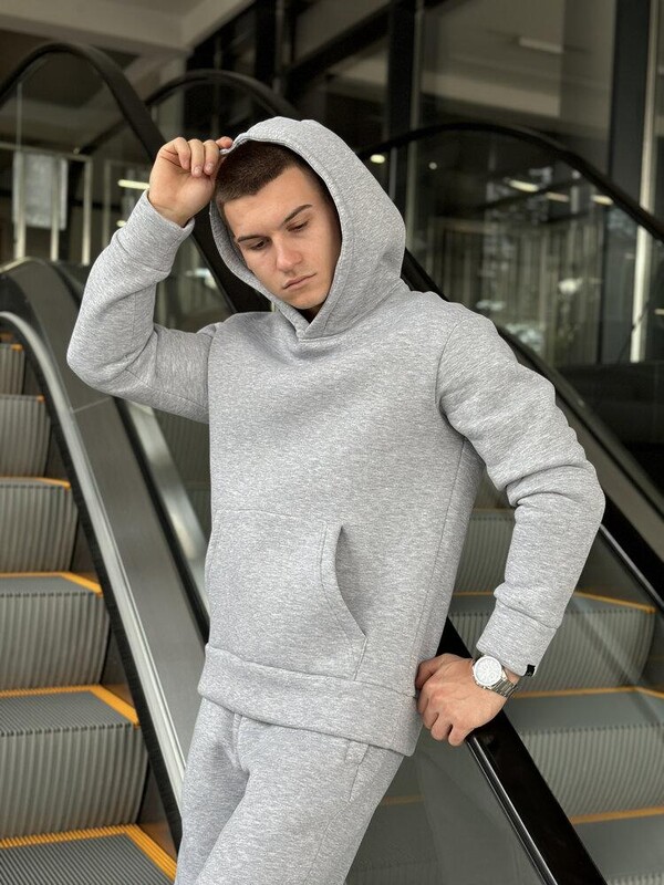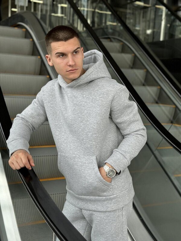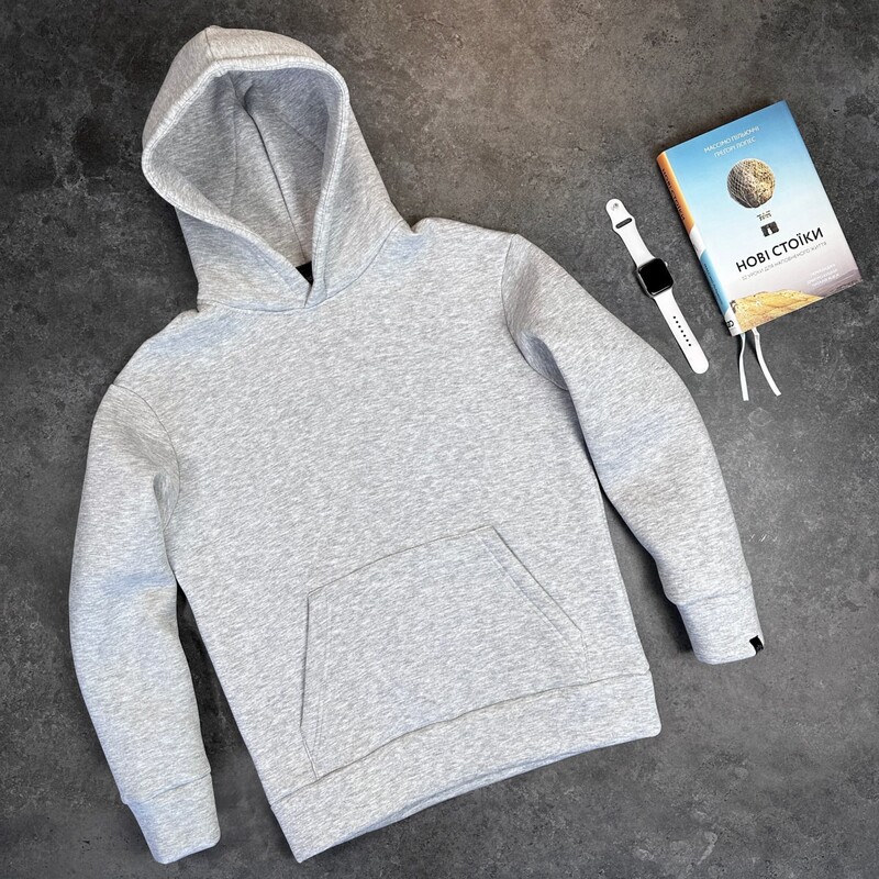• Базове худі з начісом Pobedov 008 кольору сірий меланж