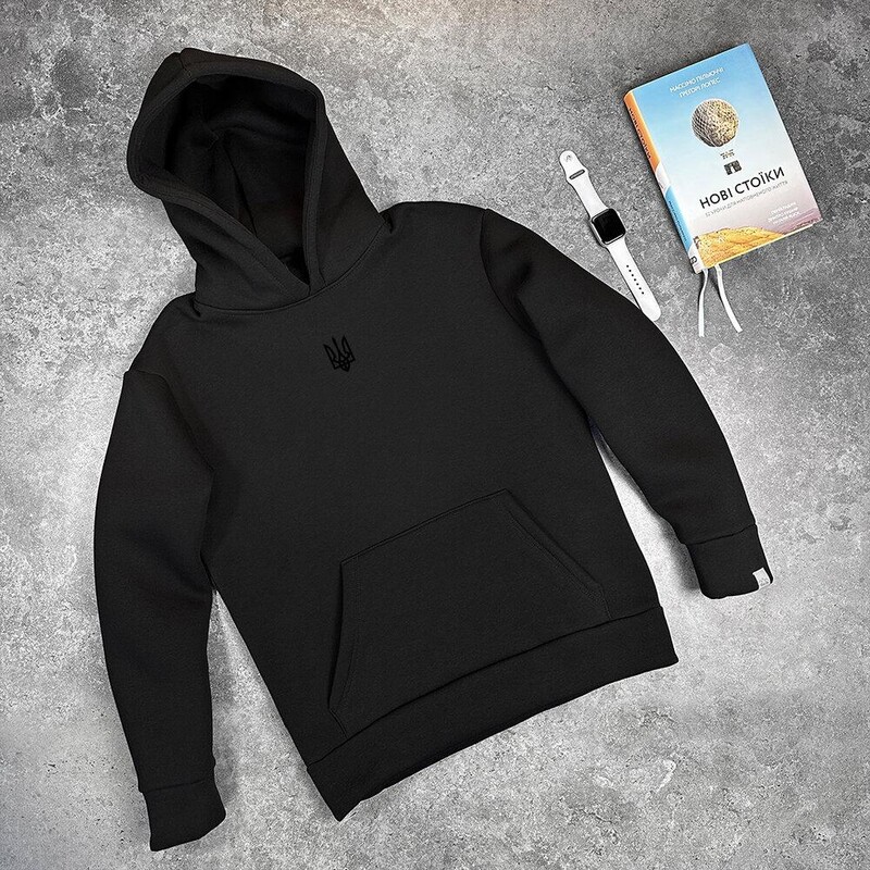 • Базове тепле худі Pobedov 008 чорне з вишивкою "Герб"