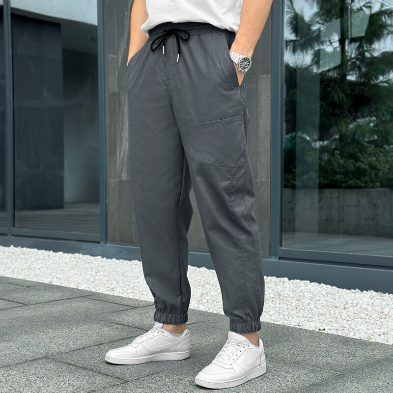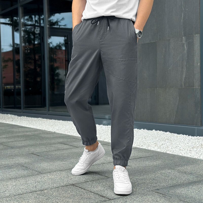 Повсякденні джогери виготовлені з високоякісного котону без стрейчу. П'ять кишень, включаючи дві бічні для зручності рук, одну набедрену та дві задні кишені. Фірмова жаккардова бірка Pobedov розміщена над задньою кишенеюю.