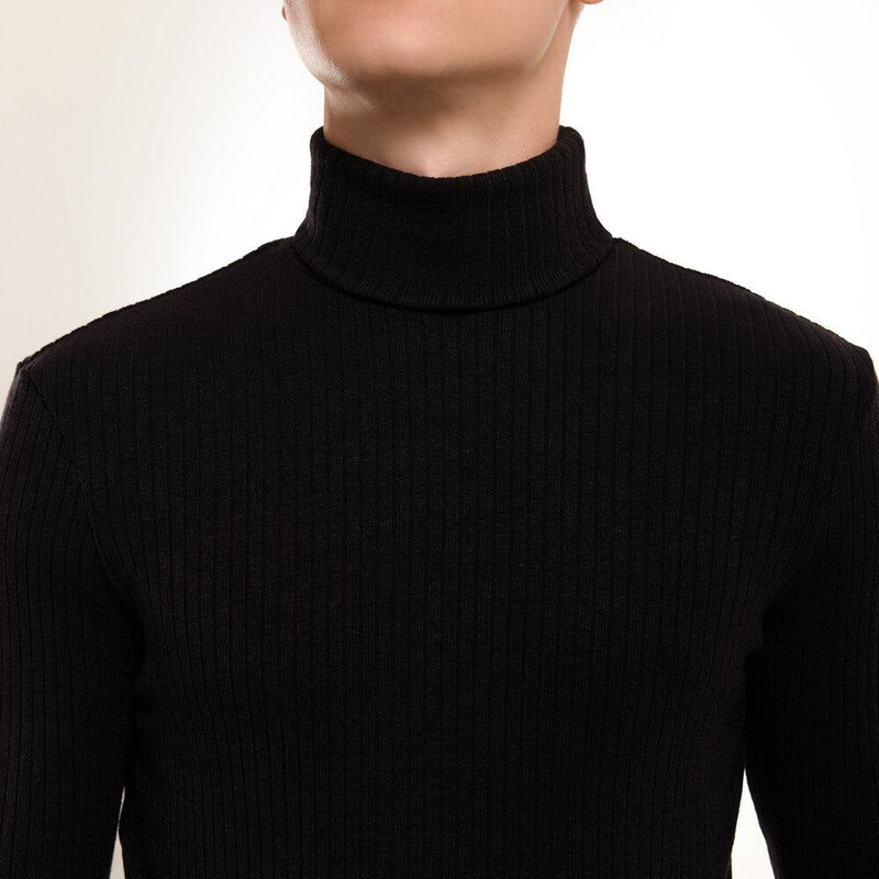 Чорний — це глибина та безкомпромісна класика: Чоловічий гольф Pobedov Prestige у чорному кольорі є бездоганним поєднанням елегантності та практичного комфорту, що здатне перетворити будь-який щоденний образ. Виготовлений з якісної ангори-рубчик (65% поліестер, 25% акрил, 10% віскоза), він не лише приємний до тіла, але й відмінно зберігає форму, глибину кольору та м'якість навіть після інтенсивного використання. Тканина, що дихає, гарантує комфортний температурний режим для прохолодної весни та осінніх днів. Приталений силует створює акуратний, підтягнутий і стильний вигляд, а високий комір виглядає благородно та надійно захищає від прохолоди.