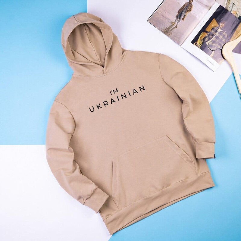 • Бежеве худі Pobedov 001 з написом I'M UKRAINIAN