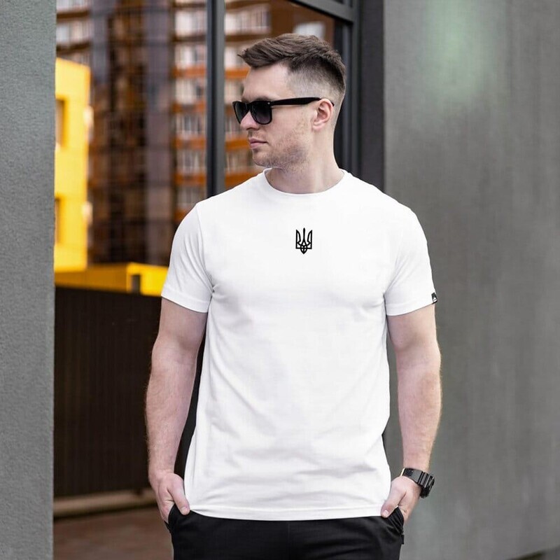 Стильна чоловіча футболка білого кольору від українського виробника Pobedov виготовлена з європейського трикотажу високої якості. Завдяки вмісту стрейчу у складі тканини виріб довго зберігає свою первісну форму, забезпечуючи комфорт та зручність у носінні. Склад тканини — 95% бавовна та 5% спандекс — робить футболку м’якою та приємною на дотик. Модель має класичний круглий виріз горловини і прикрашена наклейкою з гербом України, що додає патріотичного акценту. Фірмова жакардова бірка Pobedov підтверджує оригінальність та якість виробу. Це відмінна базова футболка на кожен день, яка ідеально сидить по фігурі, не створюючи сильного облягання.