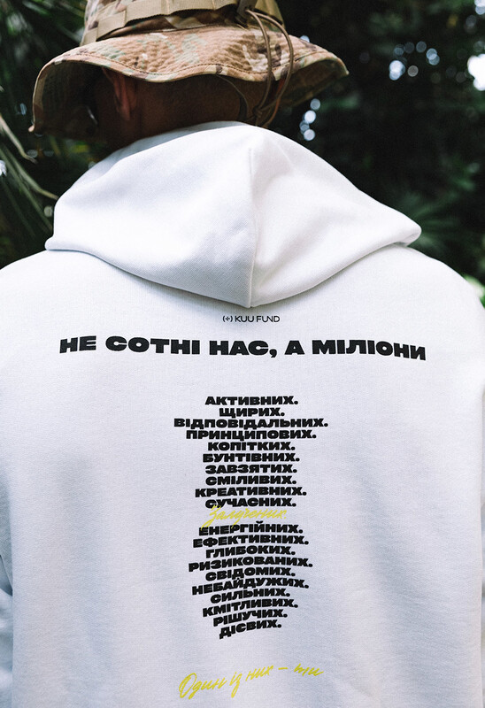 Спільна колекція худі STAFF X KUU.FUND несе у собі меседж об’єднання усіх навколо головної мети — допомоги нашим бійцям на фронті. Саме тому на худі — слова Тараса Шевченка «Не сотні нас, а мільйони».