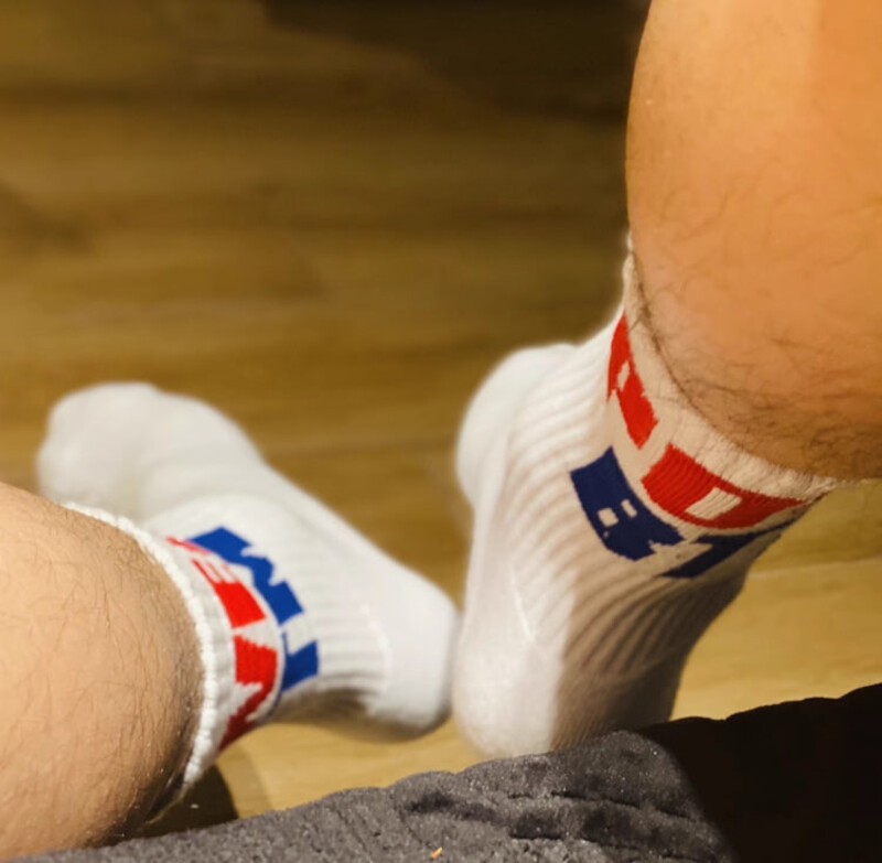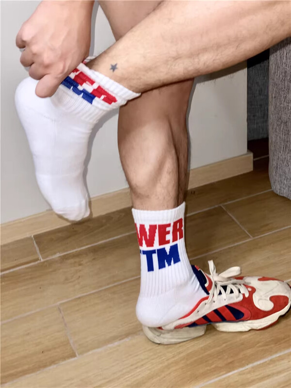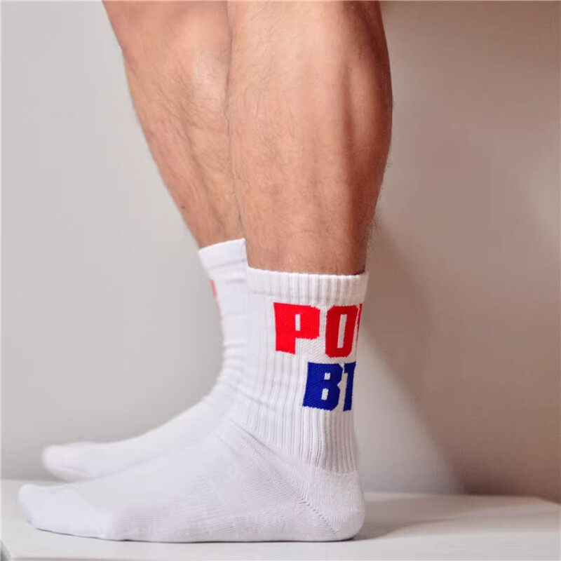 Представляємо стильні та зручні спортивні шкарпетки D.M. "POWER BTTM Gay" у яскравому білому кольорі. Напис на халяві підкреслює вашу індивідуальність і сміливість, роблячи цю модель не просто аксесуаром, а вираженням вашого стилю. Ці шкарпетки чудово підійдуть як для занять спортом, так і для повсякденного носіння.