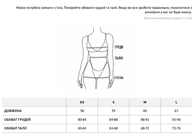Згідно Постанови Кабінету Міністрів України від 19 березня 1994 р №172 "Перелік товарів, що не підлягають обміну (поверненню)" натільна білизна і панчішно-шкарпеткові вироби поверненню та обміну не підлягають. Просимо це враховувати при покупці.