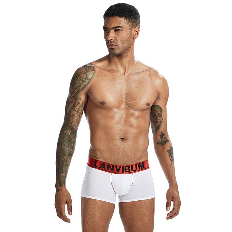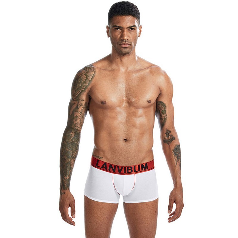 Представляємо стильні чоловічі боксери Lanvibum у класичному білому кольорі з контрастною червоною резинкою. Ці однотонні боксери — ідеальний вибір для чоловіків, які цінують комфорт, практичність та мінімалістичний дизайн у повсякденній білизні. Виготовлені з високоякісної бавовни з додаванням еластану, вони забезпечують м'якість, повітропроникність та відмінну еластичність, гарантуючи ідеальну посадку по фігурі та свободу рухів. Середня посадка робить їх універсальними та зручними для носіння під будь-яким одягом.