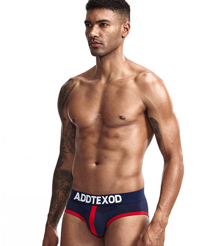 • Чоловічі темно-сині бавовняні труси бріфи з червоною вставкою Addtexod