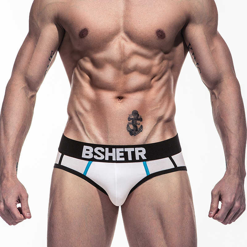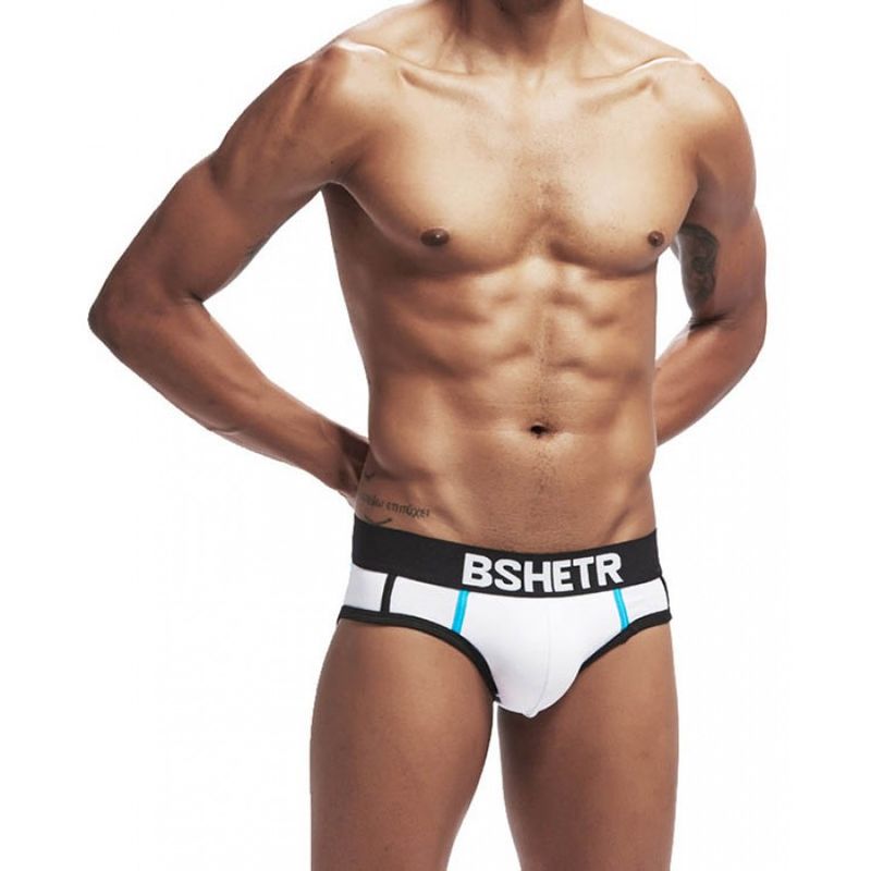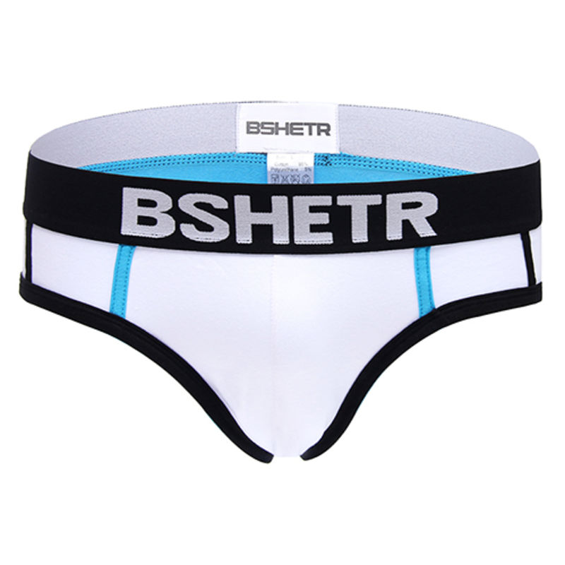 • Чоловічі бріфи Bshetr біло-блакитні з чорним поясом