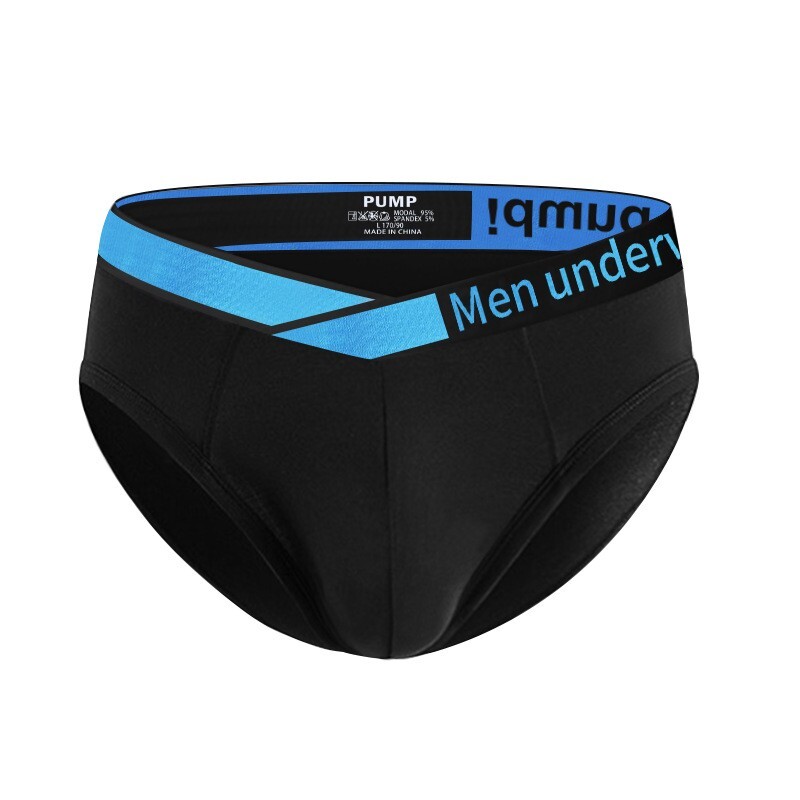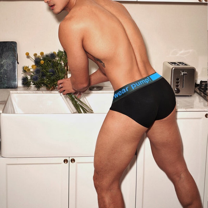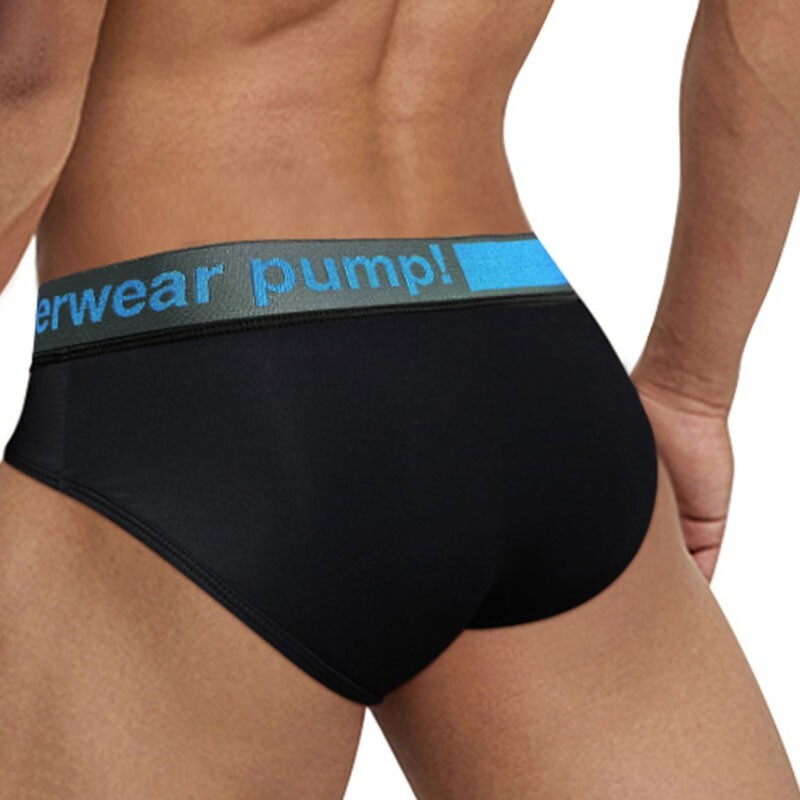 • Зручні труси бріфи чоловічі Pump чорного кольору з синьою резинкою