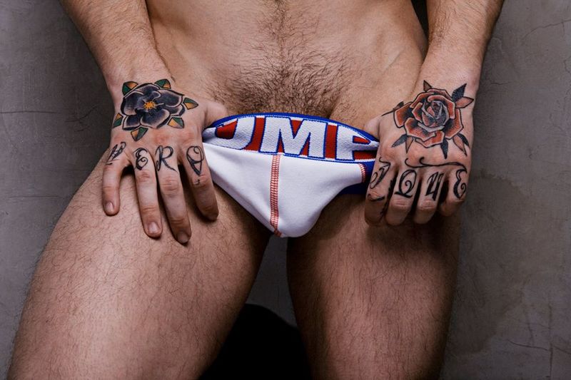 Фото - Чоловічі труси танга Pump білі з яскравою резинкою - Men box