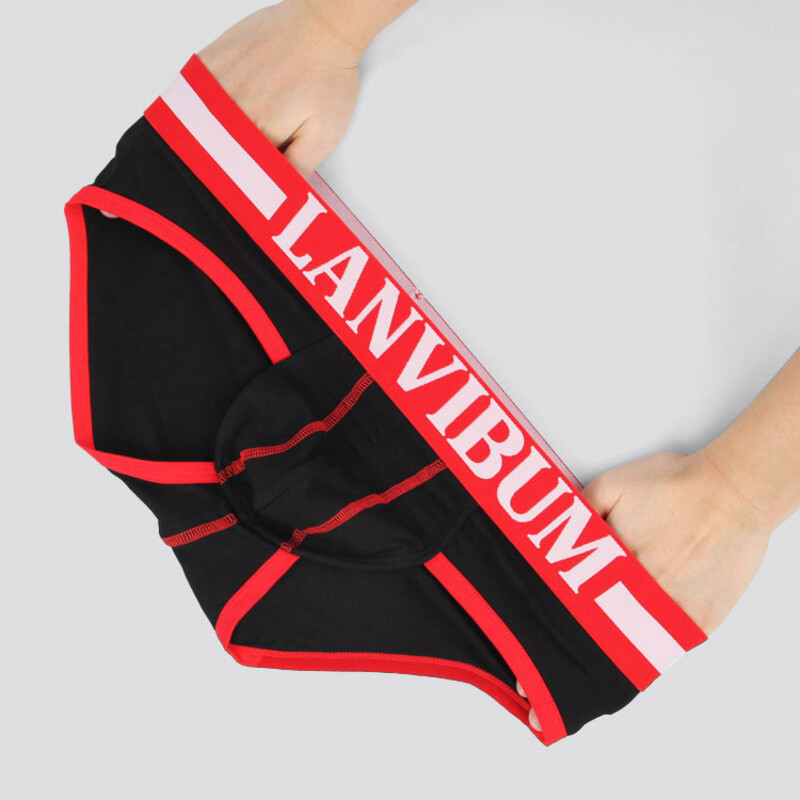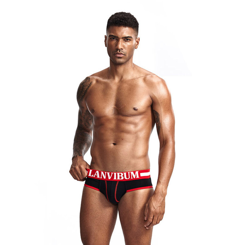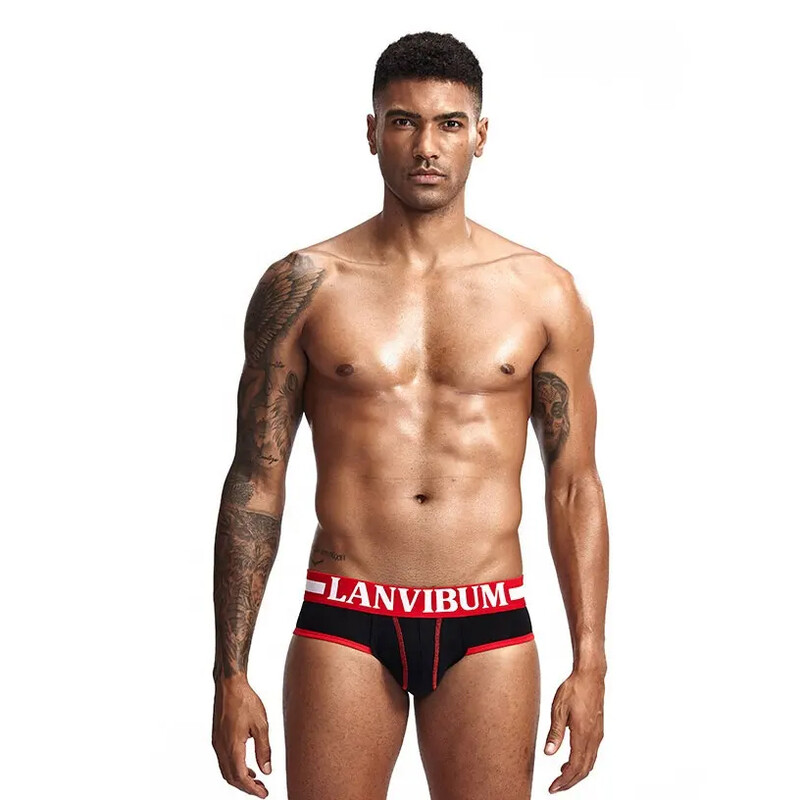 Фото - Бріфи чоловічі від Lanvibum чорні з червоним кантом бавовняні - Men box