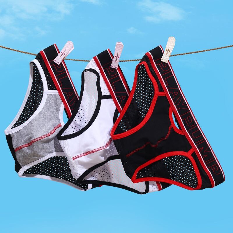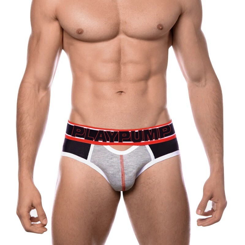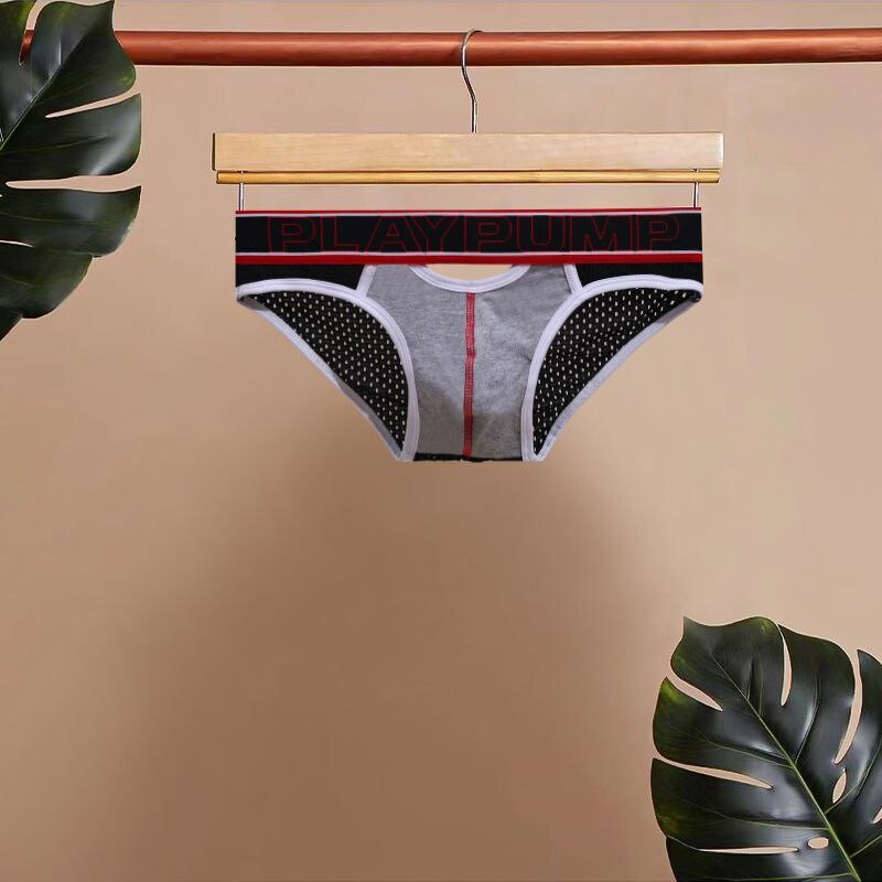 • Бріфи сітчасті від бренду Pump сірого кольору з білим кантом