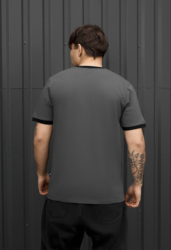 Футболка Staff Contrast у темно-сірому кольорі з чорними акцентами — стильне рішення для базового гардероба. Виготовлена з 90% бавовни та 10% еластану, вона м’яка, еластична та комфортна у щоденному носінні. Класичний крій і круглий виріз забезпечують зручну посадку, а контрастні елементи додають сучасного вигляду. Бірка з логотипом у бічному шві підкреслює оригінальність. Підходить для будь-якого сезону та різних стилів.
