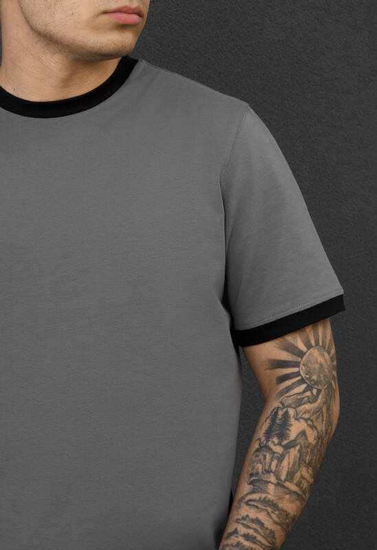Футболка Staff у сірому кольорі з чорними акцентами — стильне рішення для базового гардероба. Виготовлена з 95% бавовни та 5% лайкри, вона м’яка, еластична та комфортна у щоденному носінні. Класичний крій і круглий виріз забезпечують зручну посадку, а контрастні елементи додають сучасного вигляду. Бірка з логотипом у бічному шві підкреслює оригінальність. Підходить для будь-якого сезону та різних стилів.