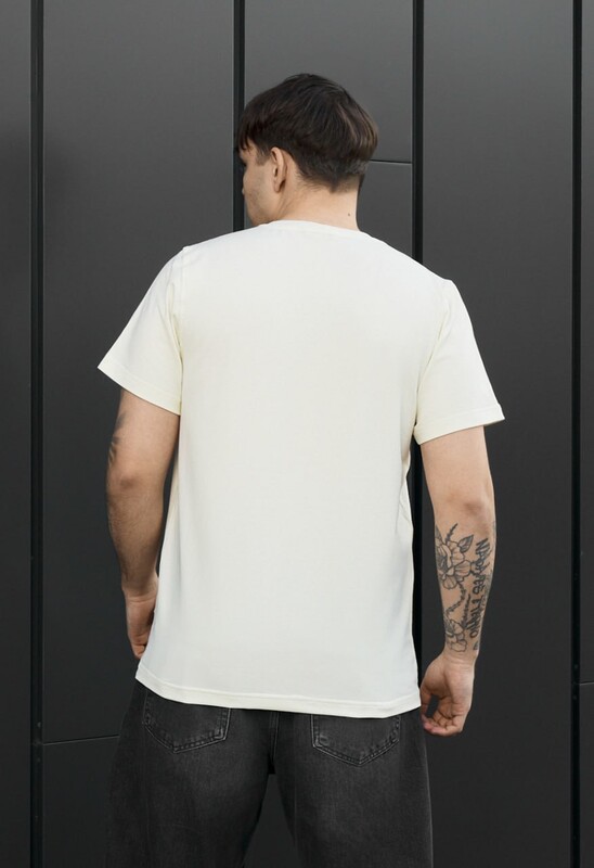 Молочна чоловіча футболка класичного крою — універсальна база для стильного гардероба. Виготовлена з якісної бавовни (90%) з додаванням еластану (10%), вона м’яка, еластична та комфортна у щоденному носінні. Круглий виріз додає лаконічності та легко поєднується з будь-яким стилем. Завдяки продуманому крою футболка забезпечує зручну посадку і свободу рухів. Бірка з фірмовим логотипом у бічному шві підкреслює оригінальність виробу. Підходить для будь-якого сезону.