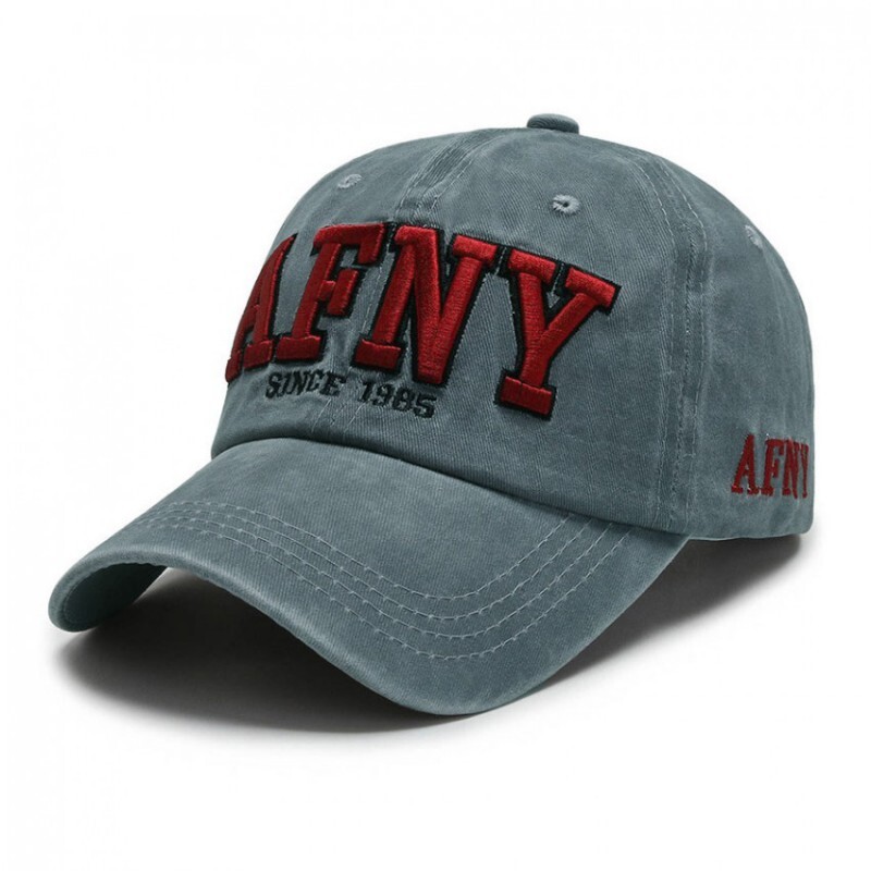 • Чоловіча бейсболка від бренду Narason сіра з лого AFNY