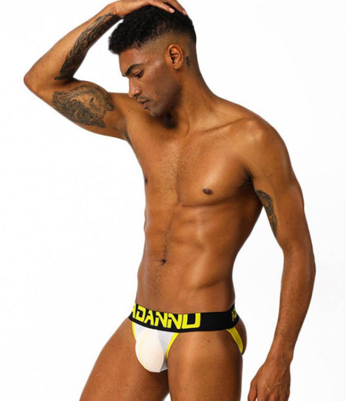 Сексуальні труси для чоловіків D.M чорно-білі стрінги з ерекційним кільцем