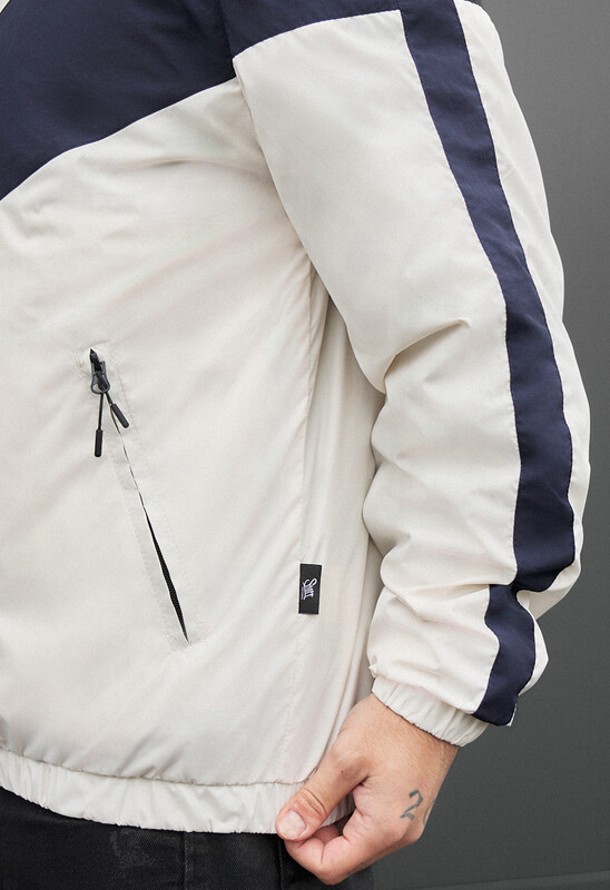 Легка чоловіча куртка у стильному поєднанні молочного та темно-синього кольорів — ідеальний вибір для демісезону. Виготовлена зі 100% поліестеру, вона забезпечує комфорт, захист від вітру та зносостійкість. Крій реглан гарантує свободу рухів, а манжети й низ на резинці додають зручної посадки. Оснащена якісною блискавкою, зовнішніми та внутрішньою кишенями. Практичний варіант для щоденного використання при температурі від +8 до +25°C.