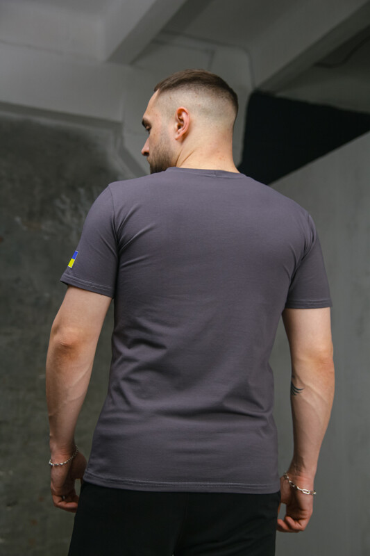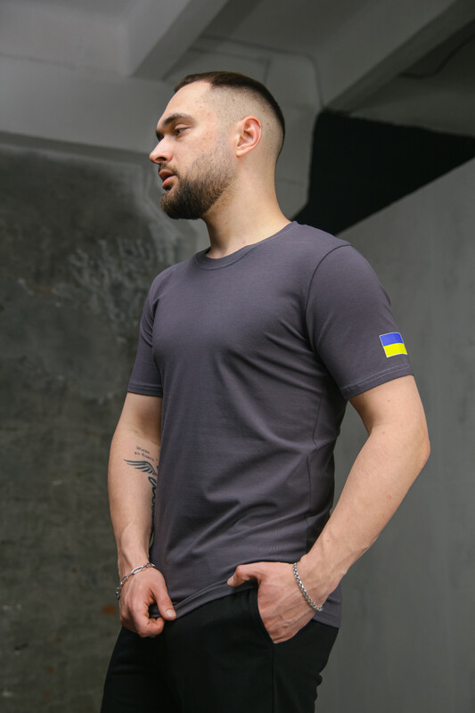 Стильна чоловіча футболка графітового кольору від українського бренду Intruder створена для справжніх патріотів, які хочуть виділятися не лише комфортом, а й яскравими деталями в одязі. Виготовлена з м’якого і міцного турецького куліру з високим вмістом бавовни та додаванням еластану, вона забезпечує зручну посадку та довговічність. Особливу увагу привертає патріотичний принт — акуратне зображення прапора України на плечі, що додає індивідуальності та підкреслює вашу позицію. Круглий виріз горловини та прямий крій забезпечують свободу рухів, а короткі рукави роблять цю футболку чудовим вибором для теплої погоди