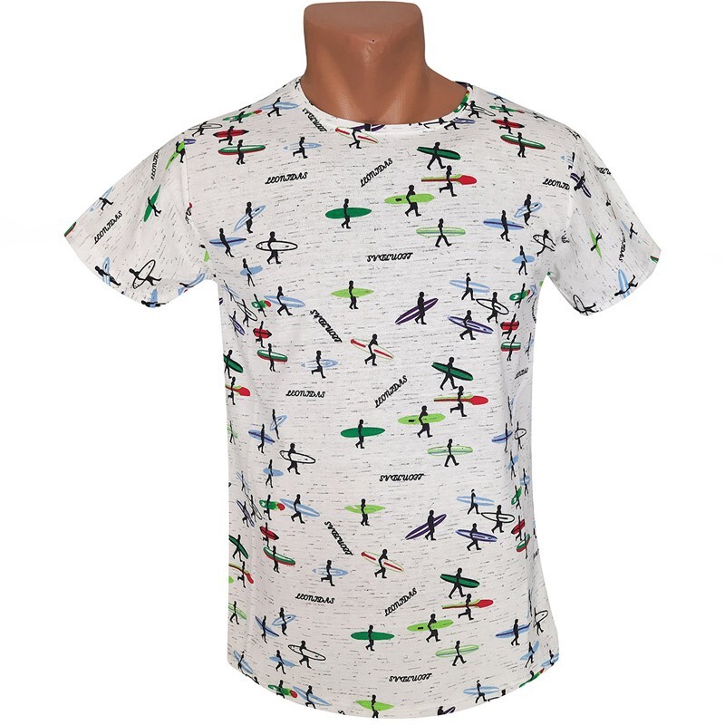 • Чоловіча футболка Leonidas біла з серфінгістами