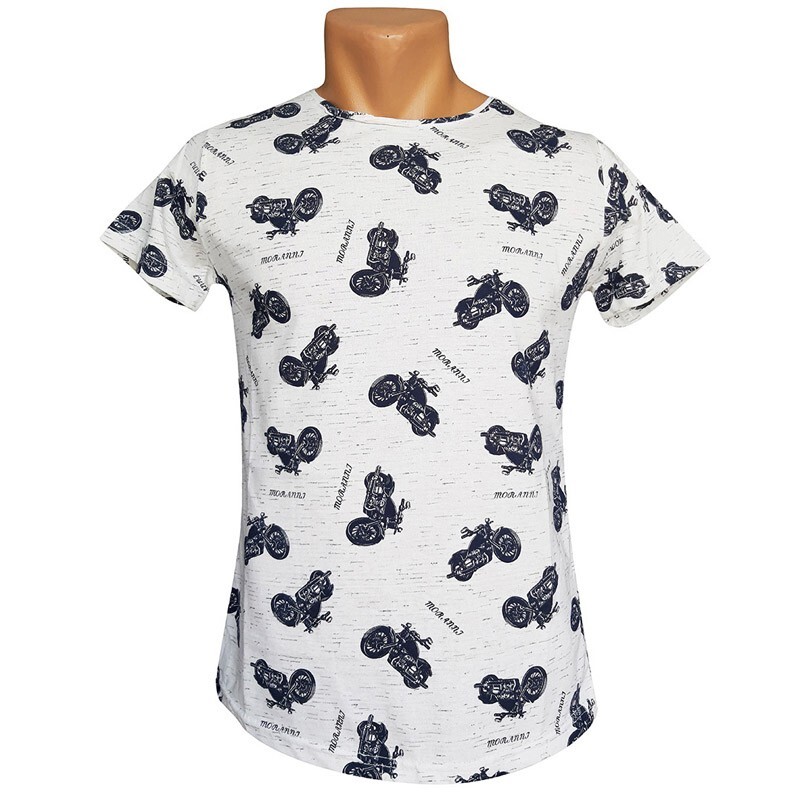 • Чоловіча футболка від бренду Moranni біла з мотоциклами