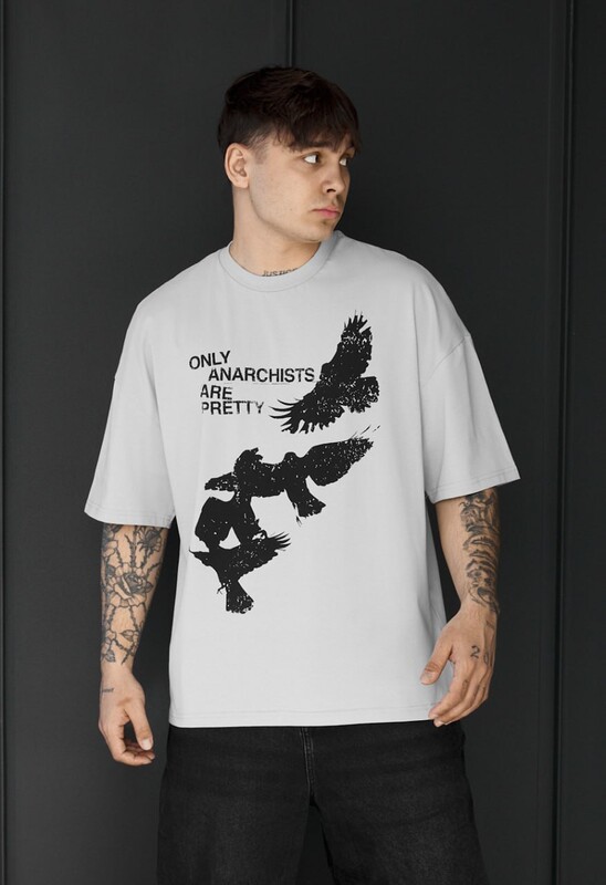 Світло-сіра футболка Staff Oversize — сучасна база з акцентним принтом пташок на грудях. Виготовлена з 90% бавовни та 10% еластану, вона поєднує м’якість, еластичність і комфорт у щоденному носінні. Вільний oversize крій та круглий виріз створюють трендовий силует і не сковують рухів. Якісний принт зберігає вигляд після прання, а фірмова бірка в бічному шві підкреслює оригінальність виробу. Ідеальний варіант для стильних casual образів.
