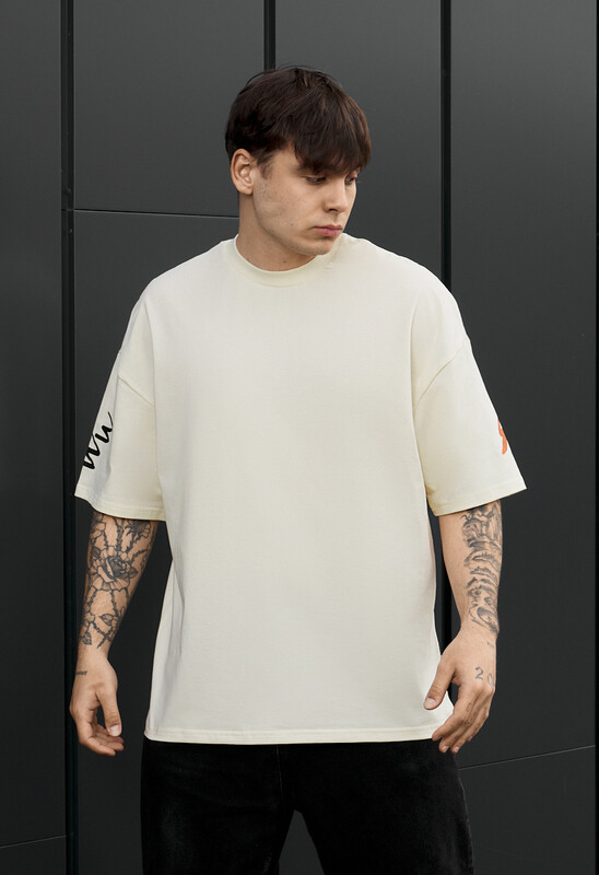 Футболка молочного кольру Staff Oversize — сучасна база з акцентним принтом. Виготовлена з 90% бавовни та 10% еластану, вона поєднує м’якість, еластичність і комфорт у щоденному носінні. Вільний oversize крій та круглий виріз створюють трендовий силует і не сковують рухів. Якісний принт зберігає вигляд після прання, а фірмова бірка в бічному шві підкреслює оригінальність виробу. Ідеальний варіант для стильних casual образів.