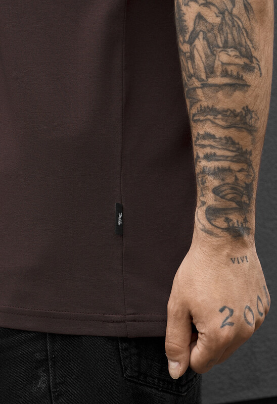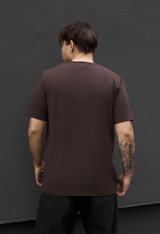 Коричнева футболка Staff — ідеальна база для щоденного гардероба. Виготовлена зі 92% якісної бавовни та 8% лайкри, вона забезпечує максимальний комфорт, м’якість і дихаючі властивості. Крій реглан і круглий виріз створюють універсальний силует, що підходить для будь-якого стилю. Фірмова бірка в бічному шві підкреслює оригінальність виробу. Підходить для носіння впродовж усього року та легко комбінується з різними образами.