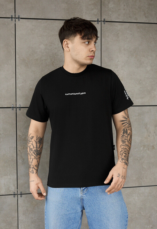 Стильна чорна футболка — ідеальний вибір для повсякденного гардероба. Виготовлена з 90% бавовни та 10% еластану, вона забезпечує комфорт, м’якість і еластичність. Класичний крій та круглий виріз гарантують зручну посадку, а якісний принт додає унікального характеру образу. Бірка з фірмовим логотипом вшита в бічний шов. Підходить для будь-якого сезону та легко поєднується з різними стилями одягу.