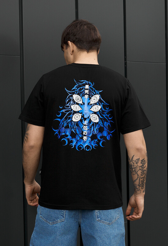 Стильна чорна футболка — ідеальний вибір для повсякденного гардероба. Виготовлена з 90% бавовни та 10% еластану, вона забезпечує комфорт, м’якість і еластичність. Класичний крій та круглий виріз гарантують зручну посадку, а якісний принт на спині додає унікального характеру образу. Бірка з фірмовим логотипом вшита в бічний шов. Підходить для будь-якого сезону та легко поєднується з різними стилями одягу.