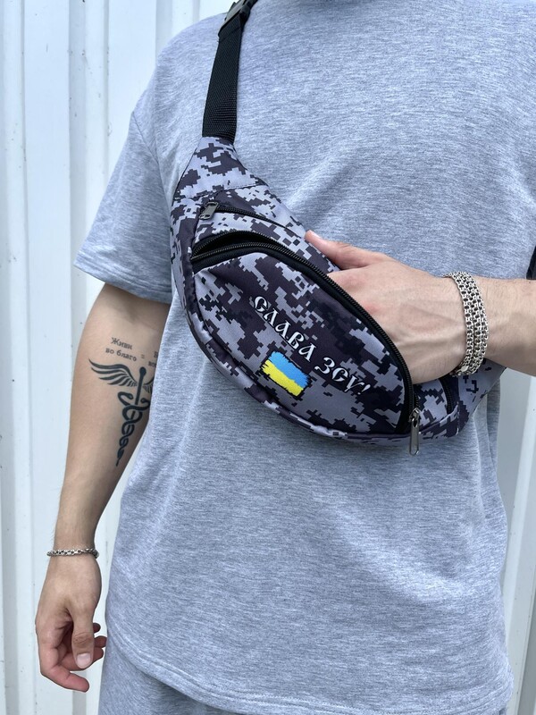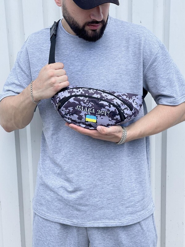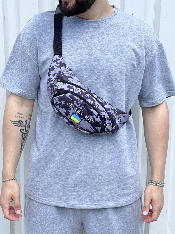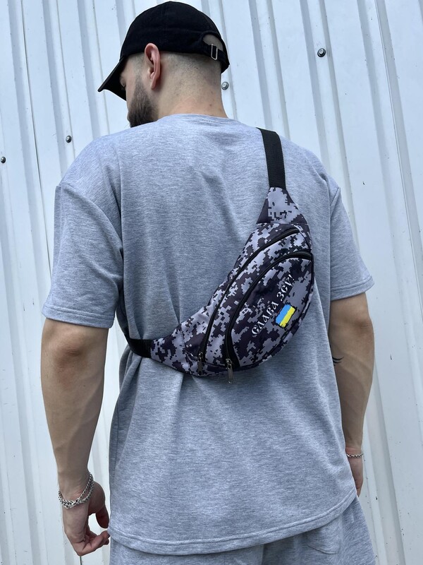 Фото - Камуфляжна поясна сумка з білим лого - Men box