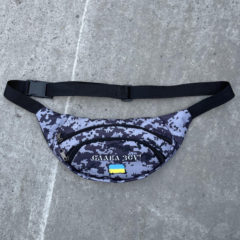 Камуфляжна поясна сумка з білим лого