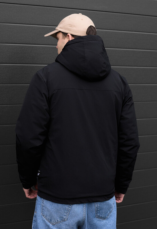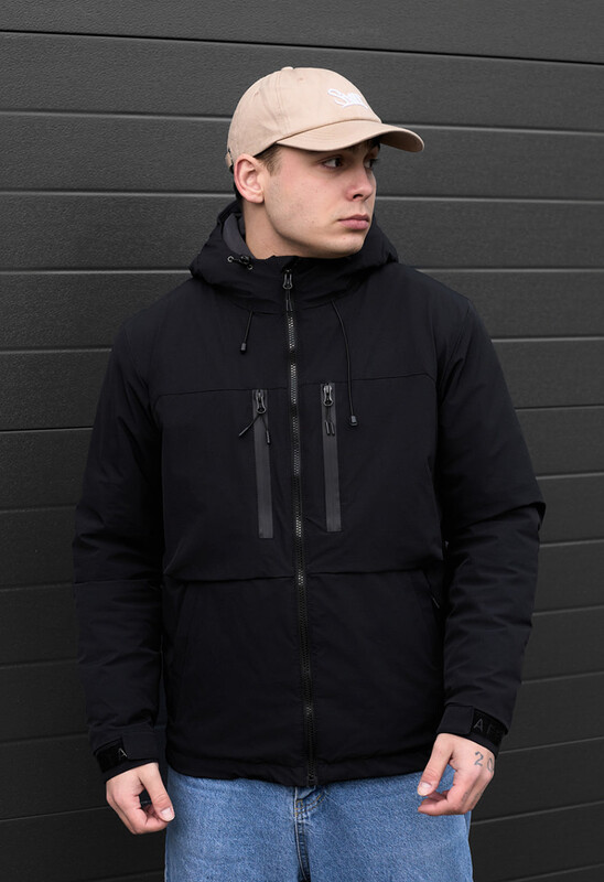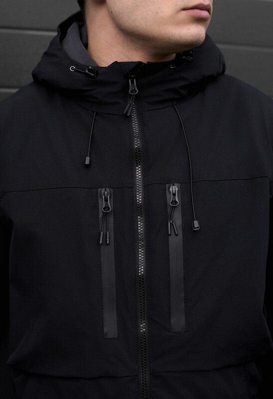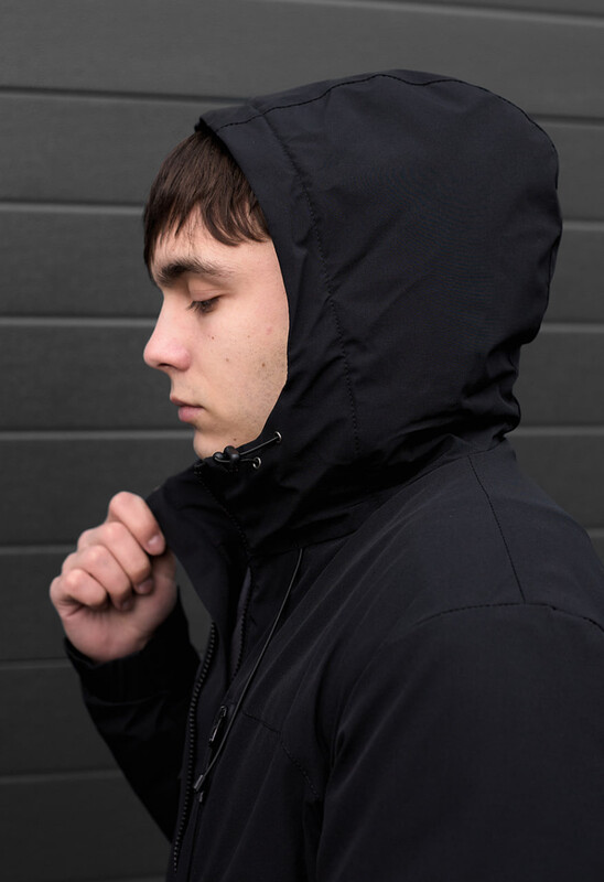 - висока горловина переходить у капюшон, ширина якого регулюється еластичною стяжкою із пластиковими фіксаторами;