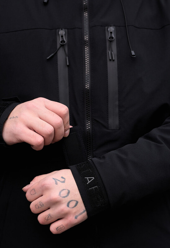 - чотири кишені: дві нагрудні на водовідштовхуючій блискавці та дві знизу на блискавці, прикритій планкою;