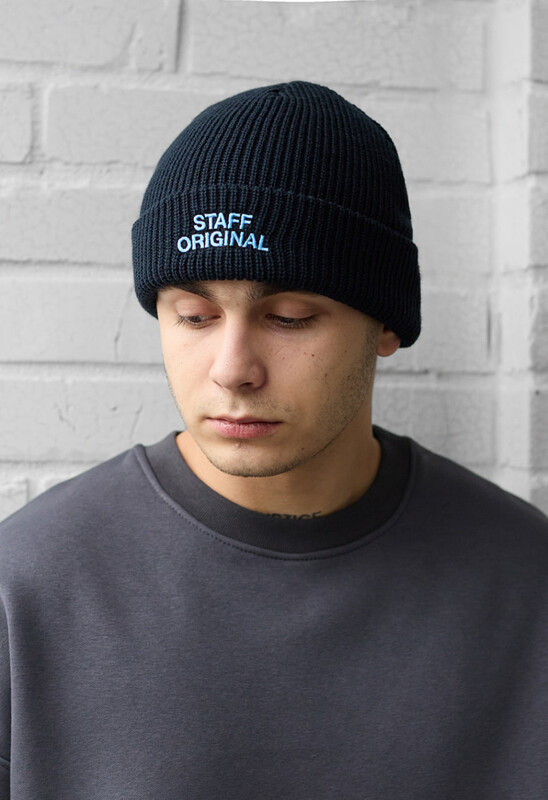 М’яка шапка щільної в'язки, доповнена широким відворотом і вишитим логотипом, чудово прикрасить твій образ та захистить від вітру.