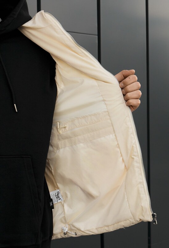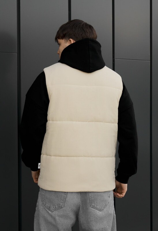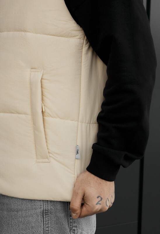Демісезонна жилетка молочного кольору— практичний вибір для щоденного стилю та комфорту в прохолодну погоду. Виконана зі 100% поліестеру з утеплювачем Hollowsoft, вона добре зберігає тепло та не обтяжує рухи. Оснащена коміром-стійкою, блискавкою з вітрозахисною планкою та функціональними кишенями всередині й зовні. Регулювання по низу забезпечує ідеальну посадку, а мінімалістичний дизайн легко поєднується з будь-яким образом.